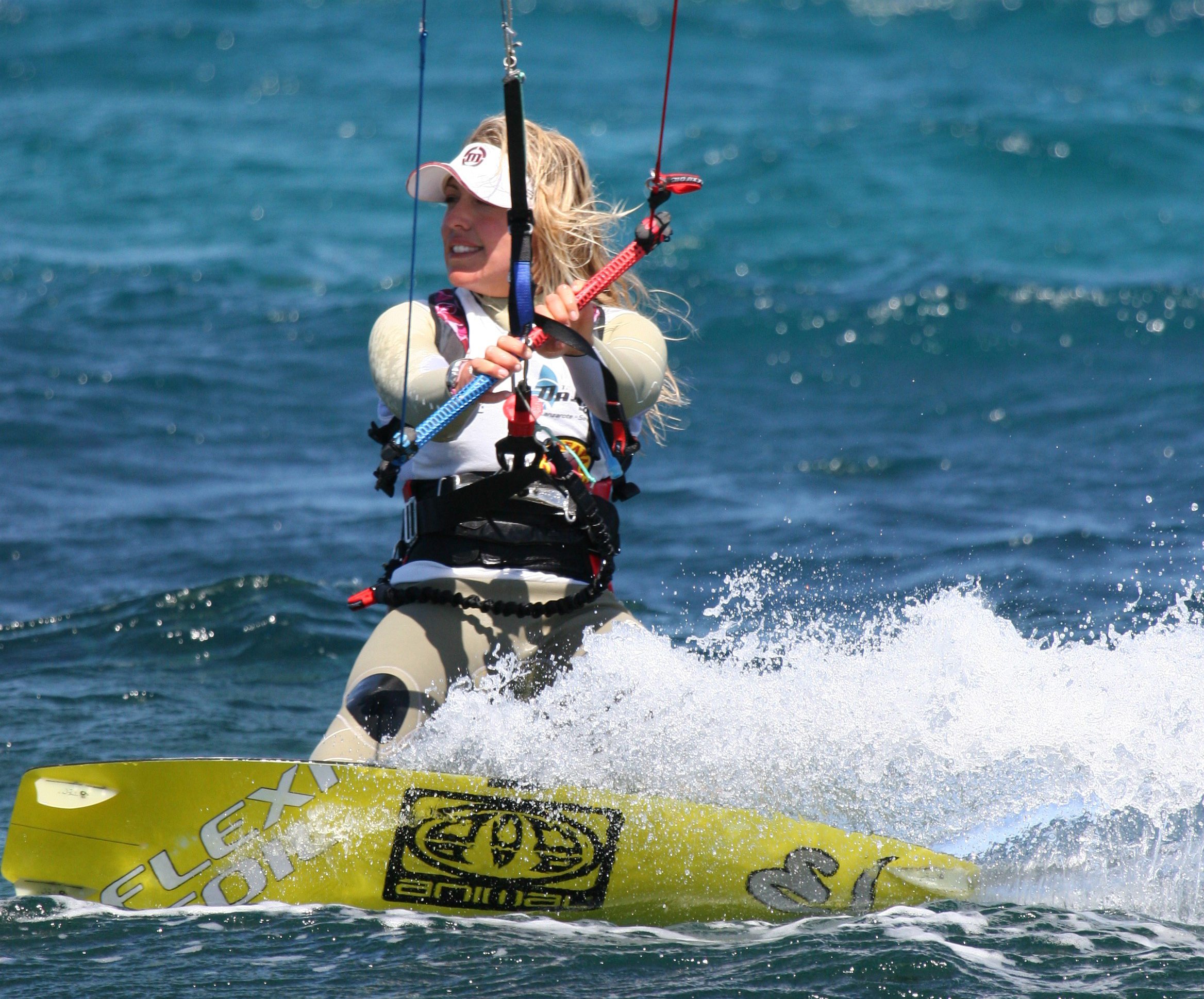 25 year-old Kirsty grew up sailing and windsurfing in Pembrokeshire. When kitesurfing arrived, she became British Ladies Champion within a year. Now Female Kitesurf World Wave Champion, she lives in Lanzarote and makes a living by travelling the World’s most exotic spots and playing in the sea..